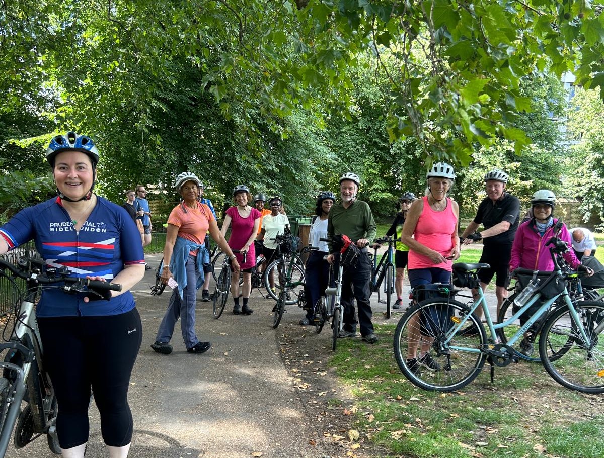 On a bright sunny morning we left Dulwich park at 10am and 18 riders set off for Chiswick House. We passed through Brockwell park and Clapham Common to pick up the Thames Path around Wandsworth Bridge. Lovely riverside scenery on the South side through Wandsworth Park and up to Putney Bridge. We crossed over and rode through Bishops Park passing the newly opened Riverside Development at Fulham palace football ground.This houses a number of cafes and restaurants which face onto the river bank. We continued on the North side through to Chiswick House. Lots of lovely outdoor seating ( though not a lot of bike racks ) at the Colicci cafe there ( they also run the cafes in Dulwich Park and the Serpentine Lido among others).