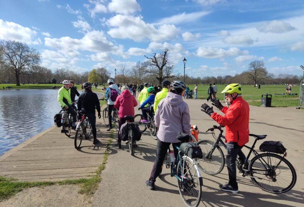 Here is where we went this year. After start in Burgess Park [1] short ride to St Peters Church off Walworth Road where we peeped at Faraday Gardens [2] and pedalled through the St Peters Church Gardens [3]. Crossed Walworth Rd then past Fielding St Allotments [4] and Pelier Park [5] to Pasley Park [6] (site of Royal Surrey Gardens in the 1800s, that also had a zoo (https://en.wikipedia.org/wiki/Royal_Surrey_Gardens). Exit to Doddington Grove noting Walwoirth Garden [7] then passed Doddington Grove Garden [8] and headed to Kennington Park [9]. Rode through the park past Bees Urban then across Camberwell New Rd and in to Foxley Rd. Cut through the well hidden Mimi Garden, [10] past Dan Leno Gardens, [12] to Eythorne Park [13] (with Marjorie Daley’s Tangerine Tree, https://www.drostle.com/myatts-field-artwork/). This is a relatively new park created as part of the Myatt’s Fields North redevelopment completed around 2015–2017. You can walk up the roof of the wedge-shaped Community Centre and one rider (guess who) did this. Next a short loop to briely enter Myatts Fields [14] then Loughborough Rd and across Brixton Rd to Slade Gardens [15]. Toruous route took us past Durand Gardens and to the house in Hackford Rd where Van Gogh lived for a while. Continued across Clapham Rd and round Albert Square [16] then across S Lambeth Rd and down Lansdowne Gardens with several trees in blossom in it’s delightlful circus [17] . On we cycled past Oasis Nature Garden (locked) [18], Larkhall Park [19] to St Paul’s Churchyard, Old Clapham [20] and the Eden Nature Garden (https://www.edennaturegarden.org/) [21]. Next Clapham common [22] the largest open space on the ride. From there a fast downhill ride to Windmill Gardens [23] next to the magnificent Brixton Mill. On to Brixton Hill which is flanked on the west side with a strip of greenery for over a mile, almost its entire length. At the point where we met it it is called Rush Common [24]. Heading east via the Tulse Hill Estate arrived at Brockwell Park [25] and went up and over to Rosendale Rd and round to Bel Air Park [26] the other sizable park in Dulwich. Next Dulwich Park [27] itself, stopping on the way at the Dulwich Estate Village Orchard [28] opposite the Picture Gallery. After a stop at the Dulwich Clock Cafe left Dulwich Park via the Court Lane Gate and sped down Barry Rd to Peckham Rye Park and Common [29]. Now very late so skipped the small parks in Peckham, headed dowm the Surrey Canal Walk [30] to Burgess Park.